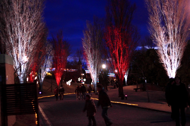 ライトアップされた鮮やかな木々