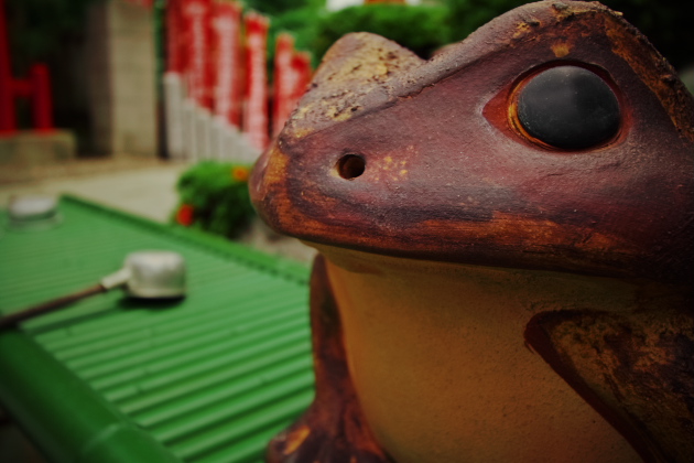 神社にカエル