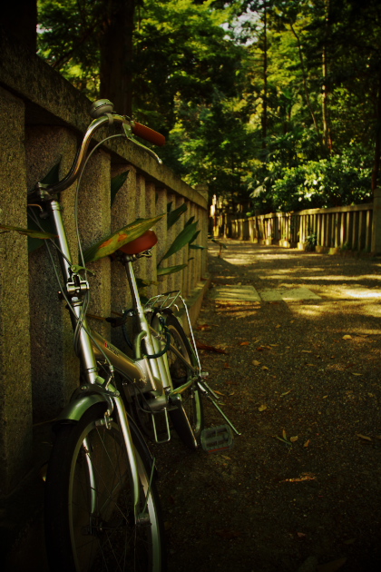 自転車と新緑