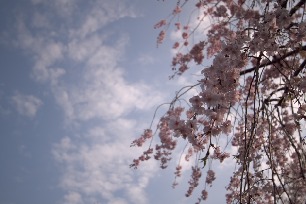 風になびく桜